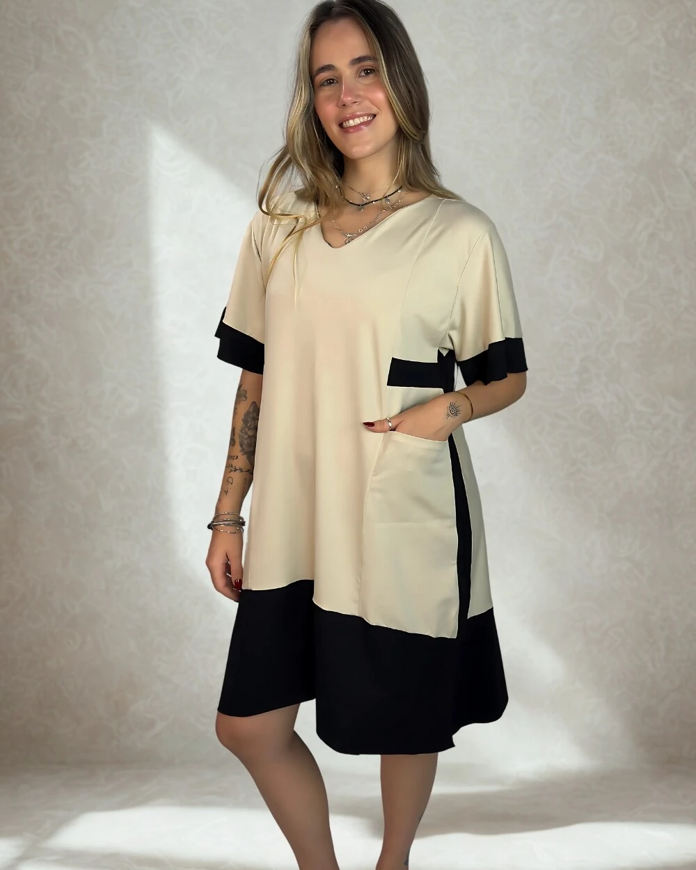 - Modelagem em A: proporciona um caimento fluido e confortável, ideal para todos os tipos de corpo.