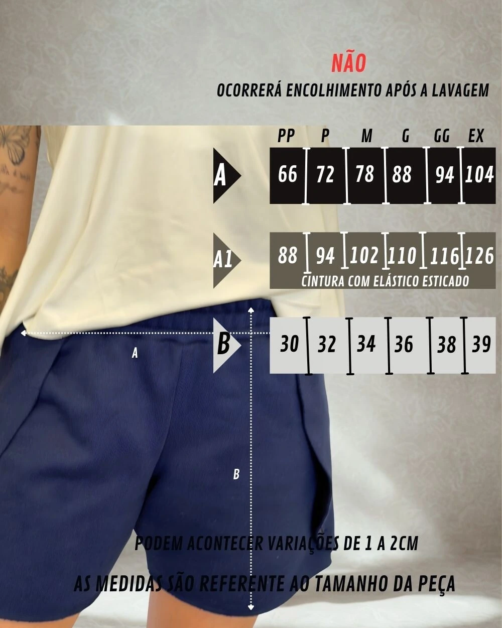 - Cós com elástico embutido: ajuste perfeito, sem apertar, para priorizar o conforto o dia todo.