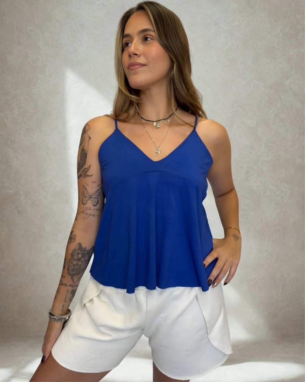 - Modelagem transpassada moderna: design que une estilo e funcionalidade, com caimento fluido, liberdade de movimento e um toque contemporâneo.