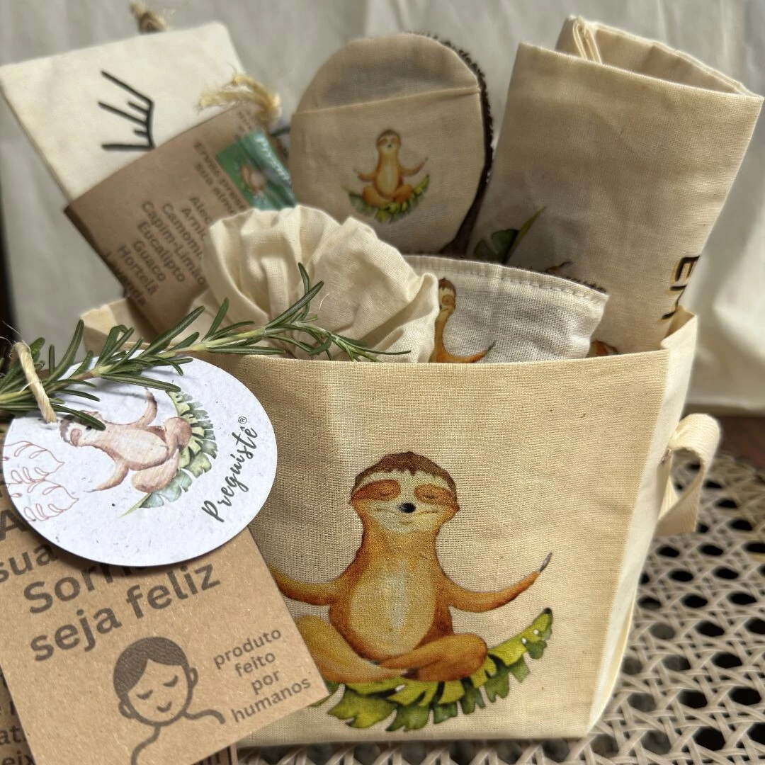 - 1 Compartimento Médio Organizador: um cesto 100% algodão que guarda o kit e depois se transforma em um charmoso organizador para decoração ou uso diário.