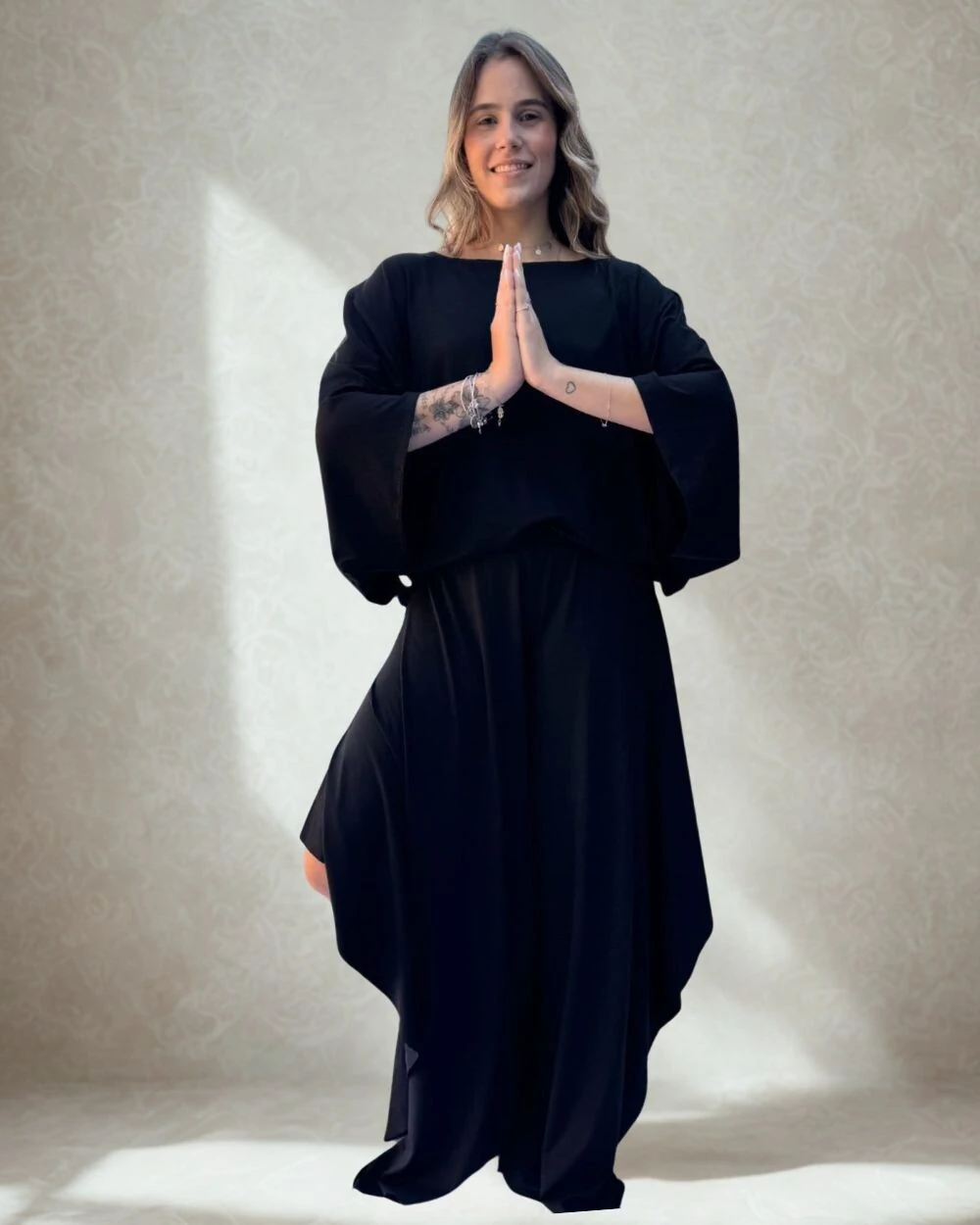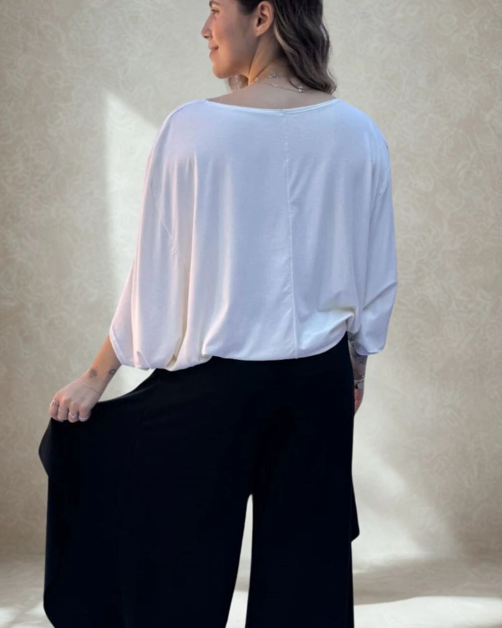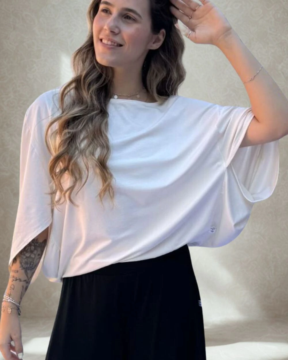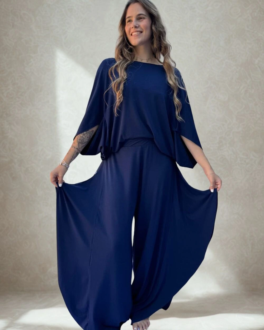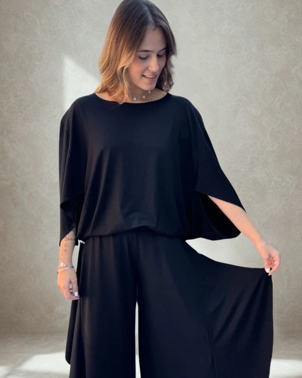 - Modelagem Diferenciada: Decote canoa que valoriza o colo e abertura transpassada nas mangas, proporcionando um visual moderno e exclusivo.